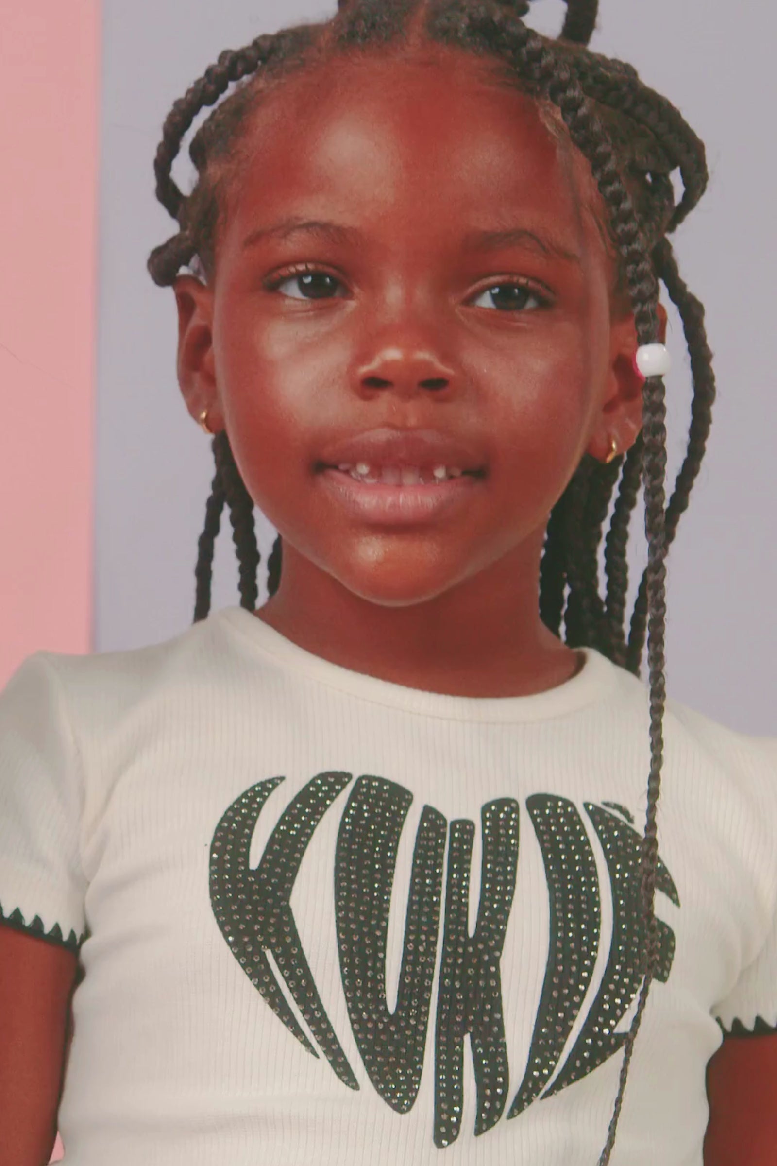 Para um look moderno e confortável, o Conjunto Kukie Kids é a escolha ideal. A blusa alongada em malha enrugada off-white possui a palavra 'Wonderful' em patch com strass, adicionando um toque de brilho. As mangas com babados e a barra da blusa com babado completam o visual delicado. A calça legging fuseau em fly tech preta oferece um ajuste perfeito e liberdade de movimento, ideal para a rotina das meninas.