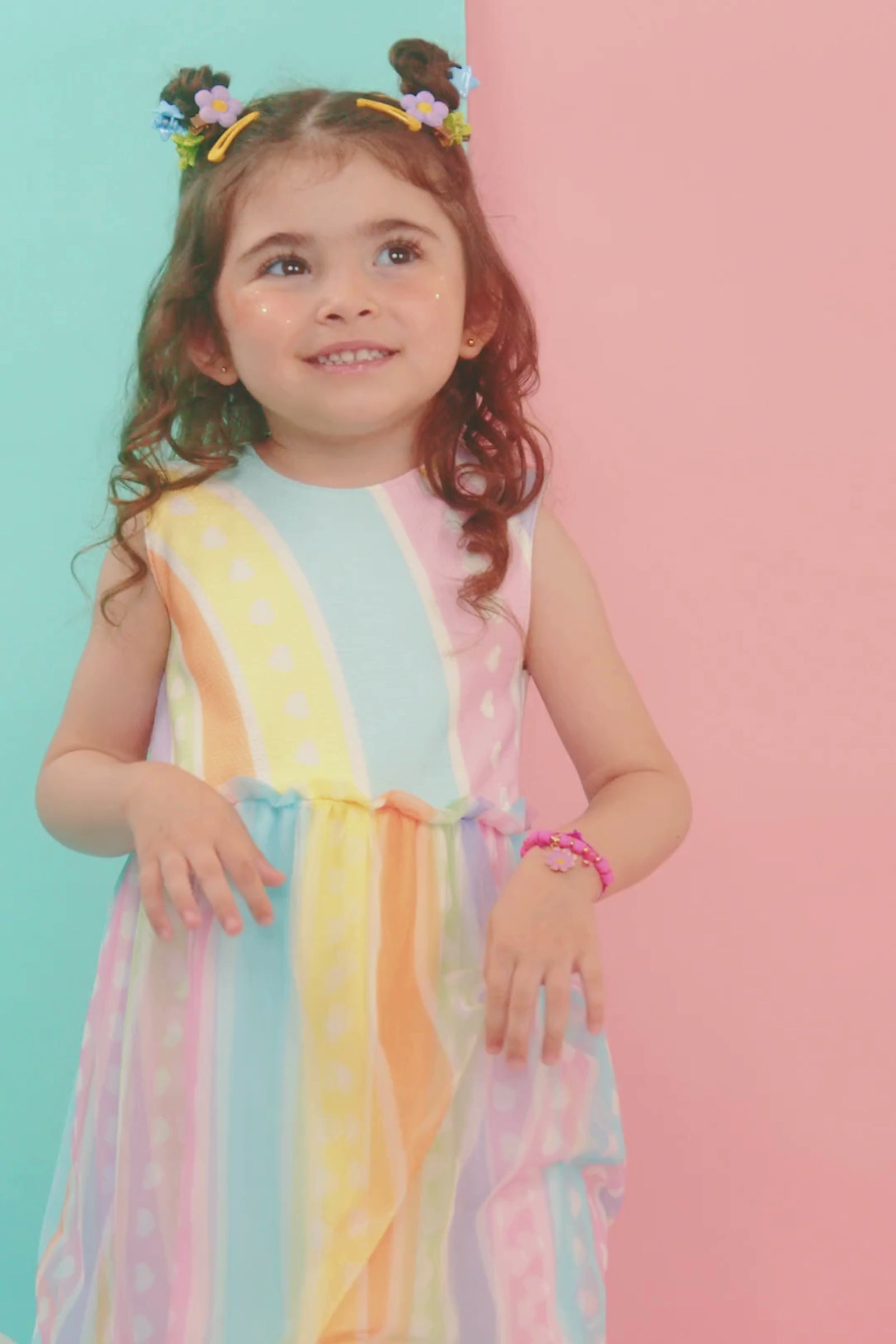 O vestido em malha favo e tule com elastano, é ideal para o dia a dia ou ocasiões especiais! Proporcionando um look cheio de cores, ele oferece conforto e leveza, perfeito para a sua pequena se movimentar livremente, proporcionando a combinação perfeita de estilo e conforto em uma peça só. A sublimação divertida, adiciona um charme especial à peça.